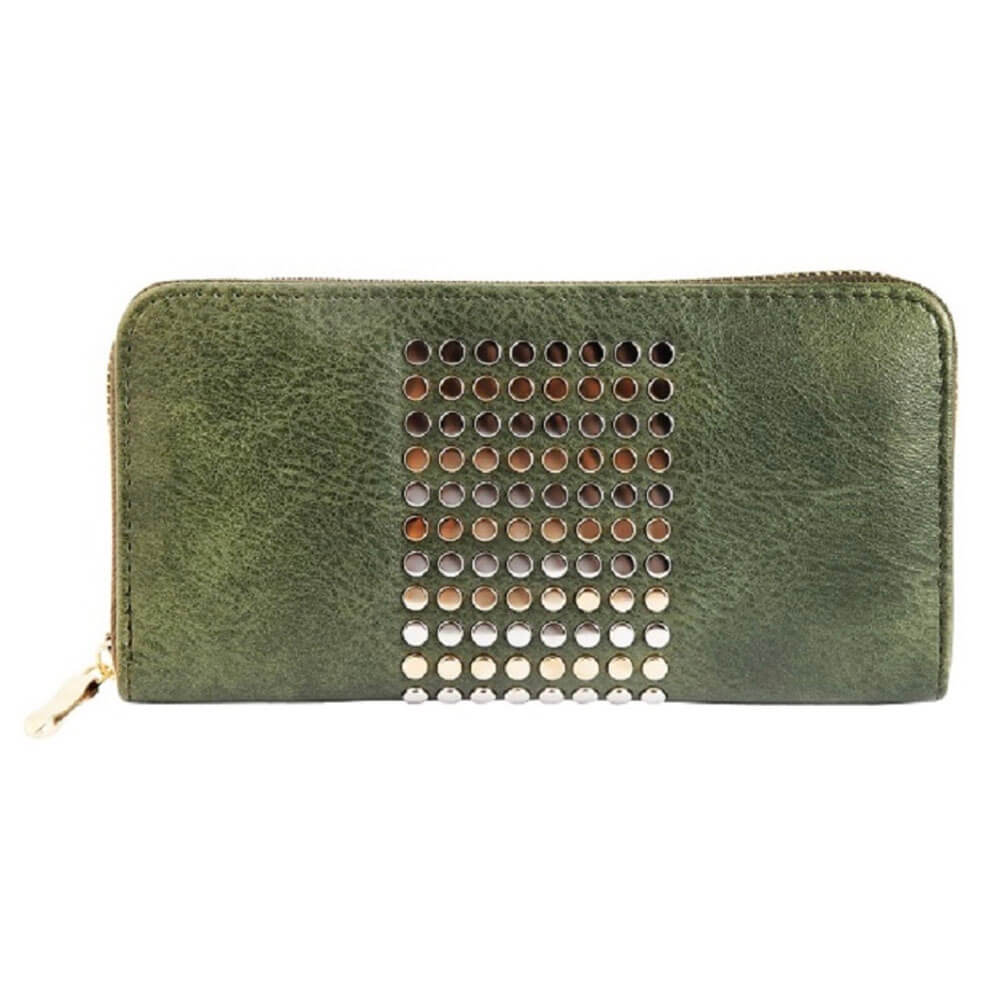 Cham Cham Γυναικείο πορτοφόλι πράσινο με ασημί και χρυσά τρούξ από συνθετικό δέρμα.