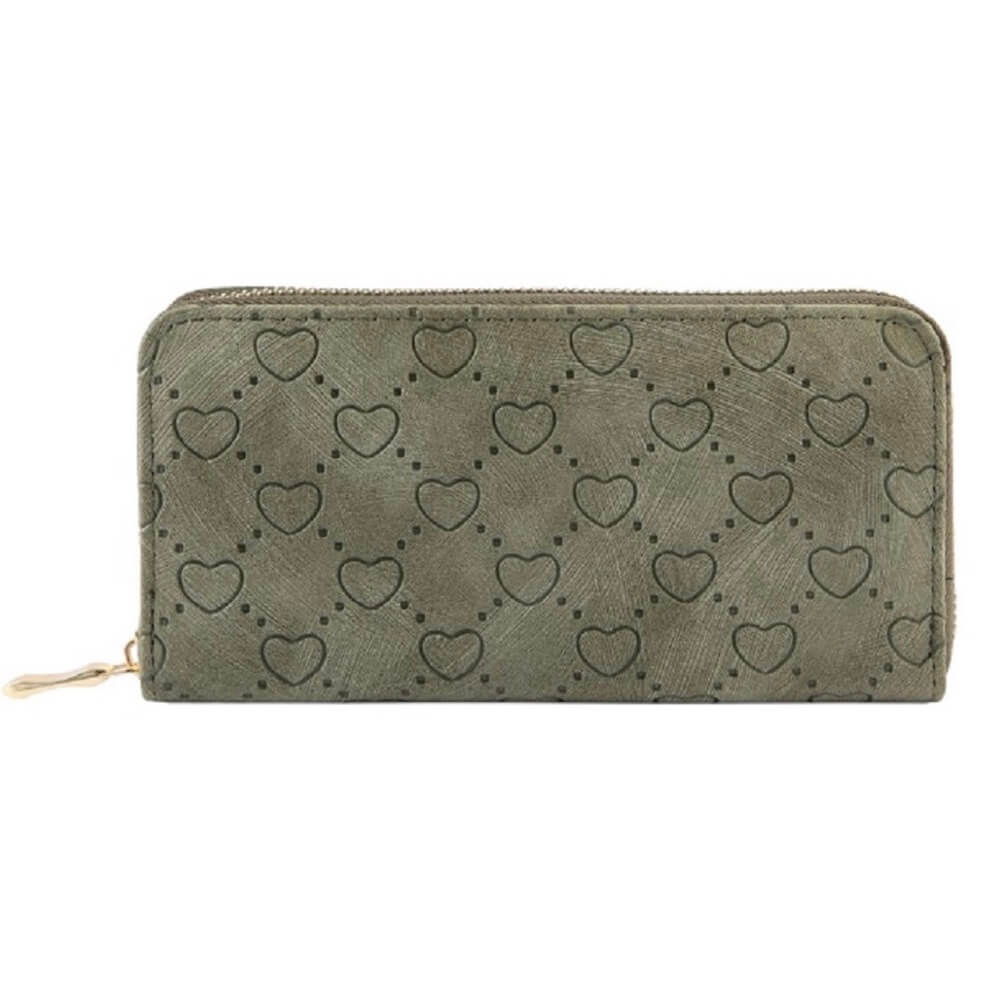 Cham Cham Γυναικείο πορτοφόλι λαδί από συνθετικό δέρμα με σχέδιο ανάφλυφες καρδιές.