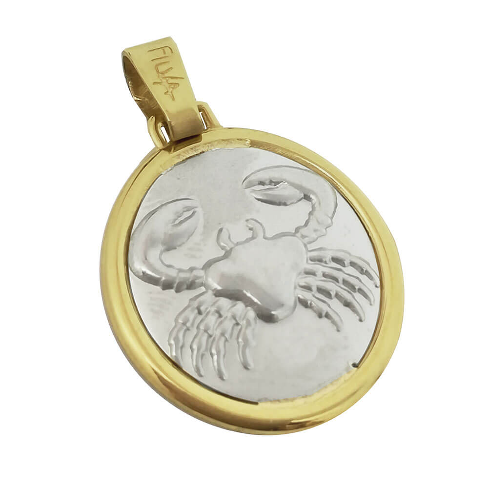 Μενταγιόν ζώδιο, διπλής όψεως, από κίτρινο & λευκό χρυσό Κ14.  Το σχέδιο διατίθεται σε όλα τα ζώδια.