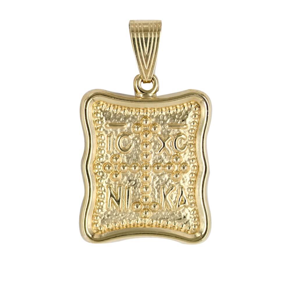 Χρυσό μενταγιόν 9 Καρατίων με ανάγλυφες μορφές ΙΧΝΚ σε σχήμα ορθογώνιο κυματιστό.