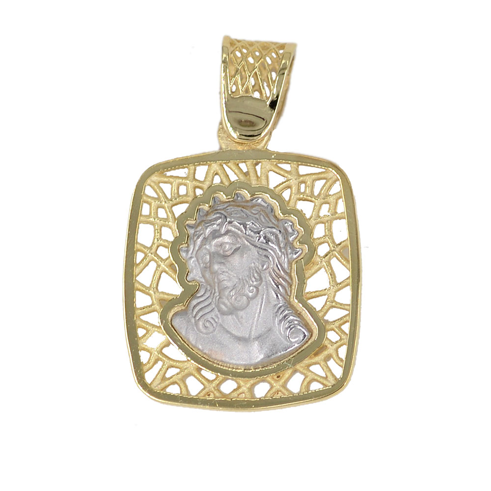 Χρυσό μενταγιόν 9 Καρατίων, ορθογώνιο σε διάτρητο σχέδιο με τη μορφή του Χριστού.