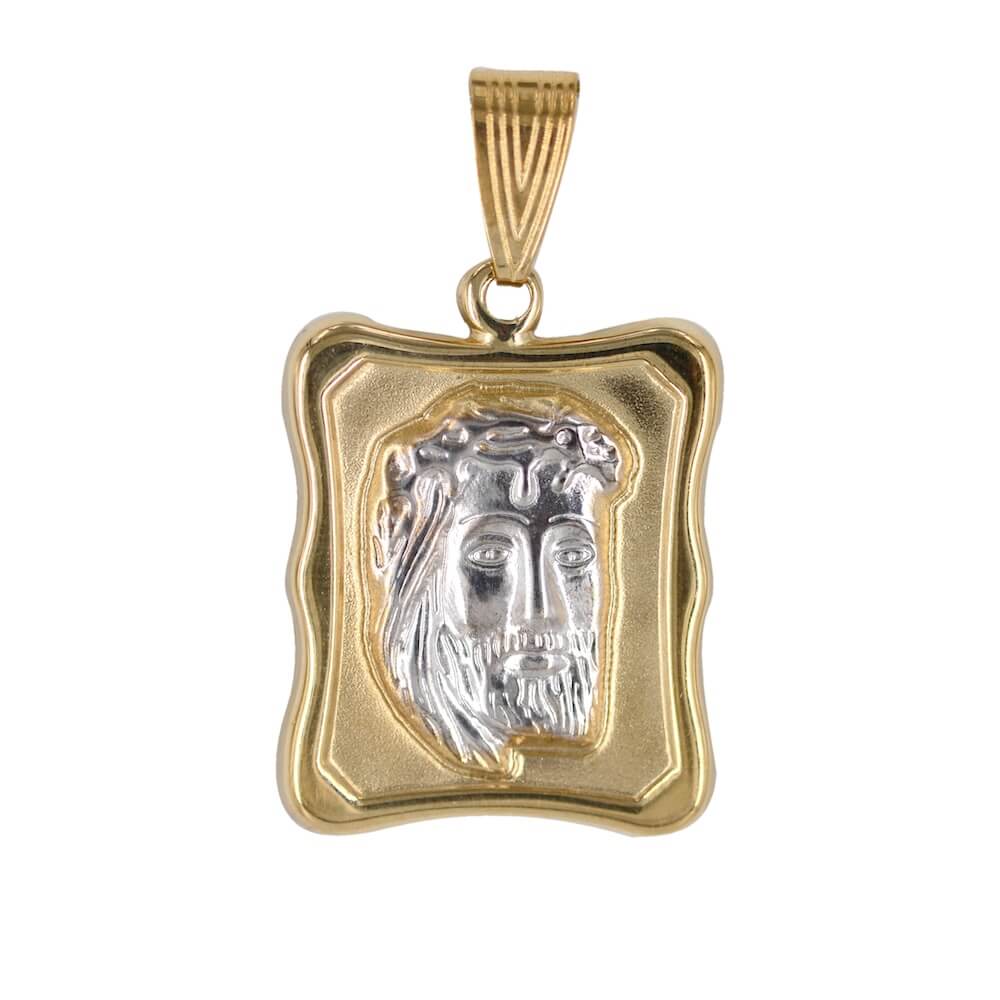 Χρυσό μενταγιόν 9 Kαρατίων ρόμβος με καμπυλωτές γωνίες με ανάγλυφη κεφαλή Ιησούς Χριστός, χωρίς πλάτη.
