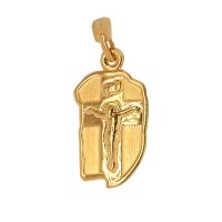 Μενταγιόν χρυσό 14 Καρατίων, διπλής όψεως. Από τη μία όψη η κεφαλή του Χριστού, από την άλλη όψη ο Εσταυρωμένος.