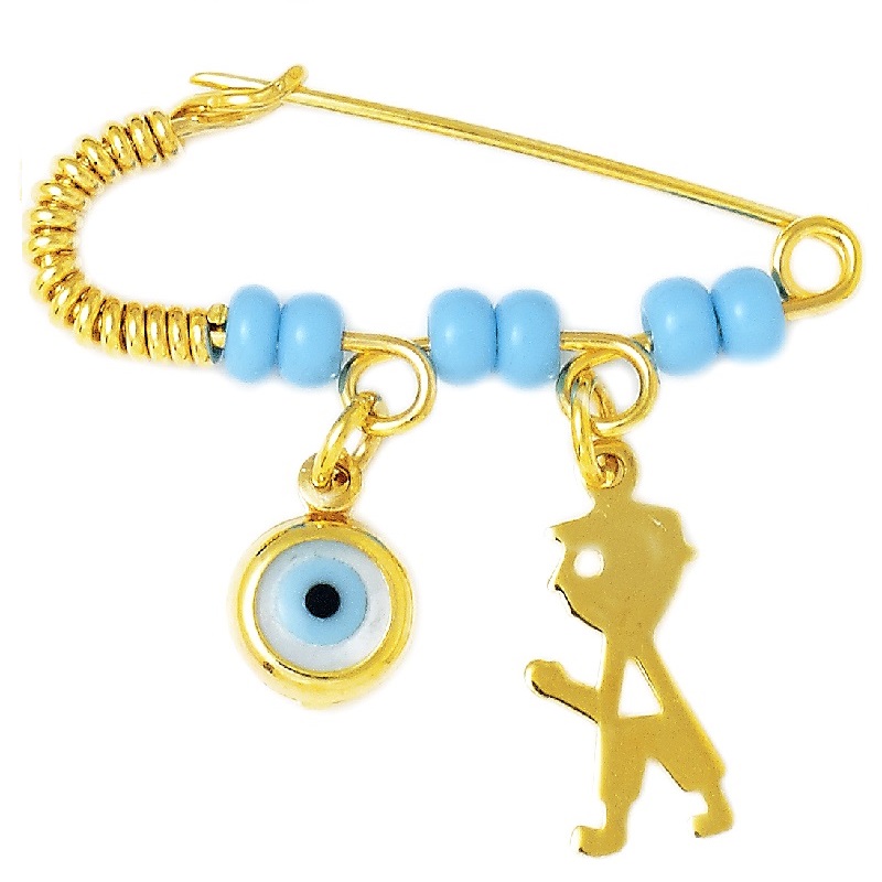 Παραμάνα χρυσή 9 Καρατίων με τυρκουαζ χάντρες, αγόρι και ματάκι.