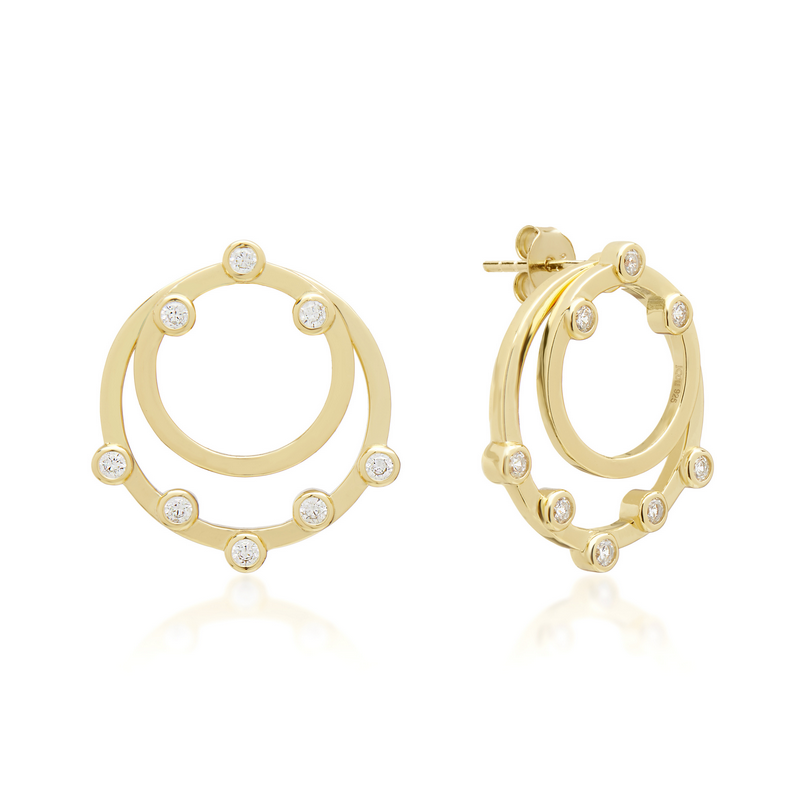 JCou Round Minimal Earring, Ασημένια 925° Σκουλαρίκια, Επιχρυσωμένα JW906G4-01