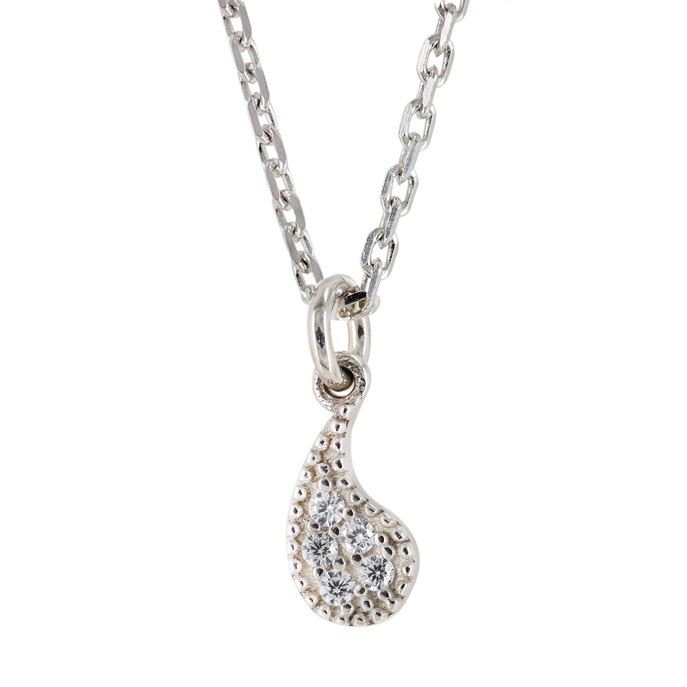 Ασημένιο κολιέ 925, επιπλατινωμένο, με μοτιφ δάρκρυ με λευκές πετρούλες.